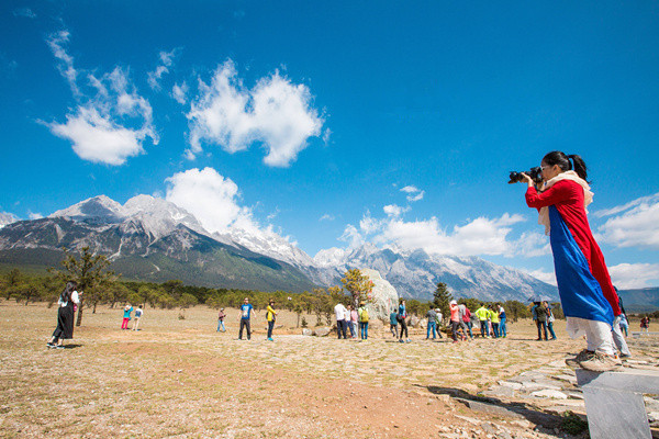 玉龙雪山就在丽江北侧,短短时间便可以到来,进入景区第一个休息点就是甘海子,这里可以遥望雪山
