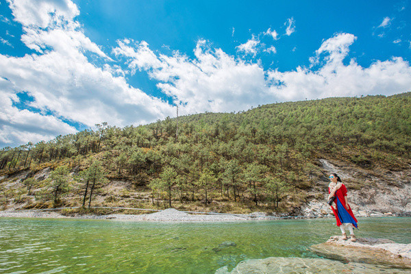 为了避开早晨的人流,我们先行选择了蓝月谷游玩,蓝月谷就在雪山脚下,整个景点还是比较长的,为了节约时间可以乘坐电瓶车游览,会有三个下车、上车点