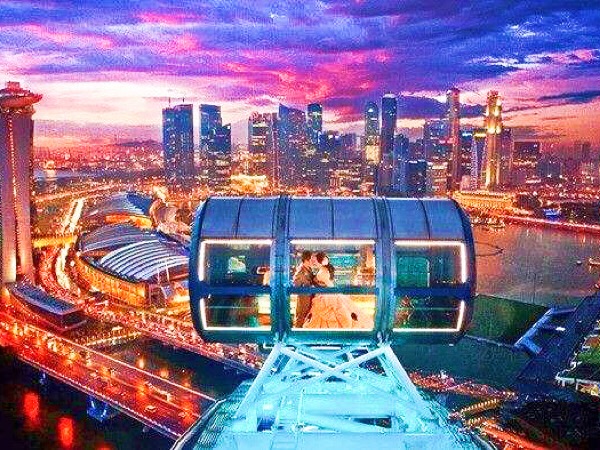 最佳观赏时间是傍晚时分,观赏着紫红色的落日晚霞,华灯初上,新加坡的风景尽收眼底。同时还可享受在摩天轮上进晚餐的体验,与身边的亲人好友坐拥美景之际,共享美食香槟。