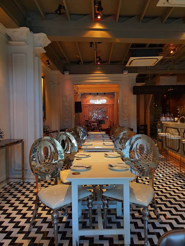 Anna Cafe’的菜品颜值完全可以吹爆朋友圈,至于味道,我感觉它是在本土泰国菜的基础上做了一些调整,所以味道并没有那么浓烈,让人比较容易接受。这几道菜里面我最喜欢的还是凉拌香蕉花+烤老虎虾和七彩香菇春卷,凉拌香蕉花带着一丝淡淡的芭蕉叶清香,个头超大的老虎虾烤得刚刚好,用刀叉就可以轻松剥皮,咬一口那叫一个鲜滑嫩爽。至于七彩香菇春卷,看起来可能比较清淡,但是配上稍带酸辣的蘸水,根本不想停筷好吗?
