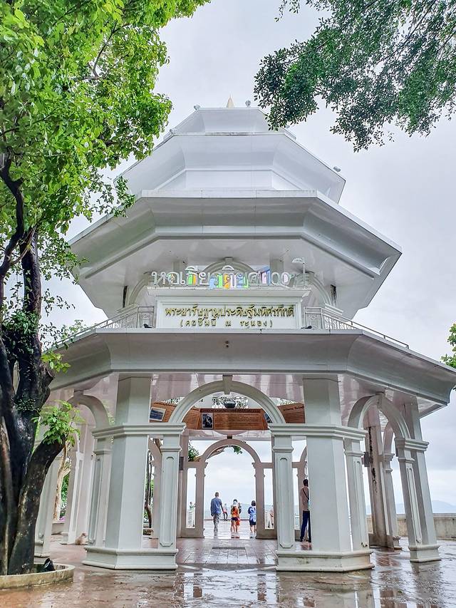 到达山顶后有一个小亭子,穿过亭子就是观景台了,在这里可以俯瞰到整个普吉镇的样貌。远处海天连成一线,大片大片的云朵和绵延的山峰追逐着彼此的身影,山风有点猛烈,我俩静静地站着看了一会儿风景,彼此没有说话。大概是因为山风带走了我的心事,所以心里没那么苦闷了,取而代之的是一种久违的宁静。