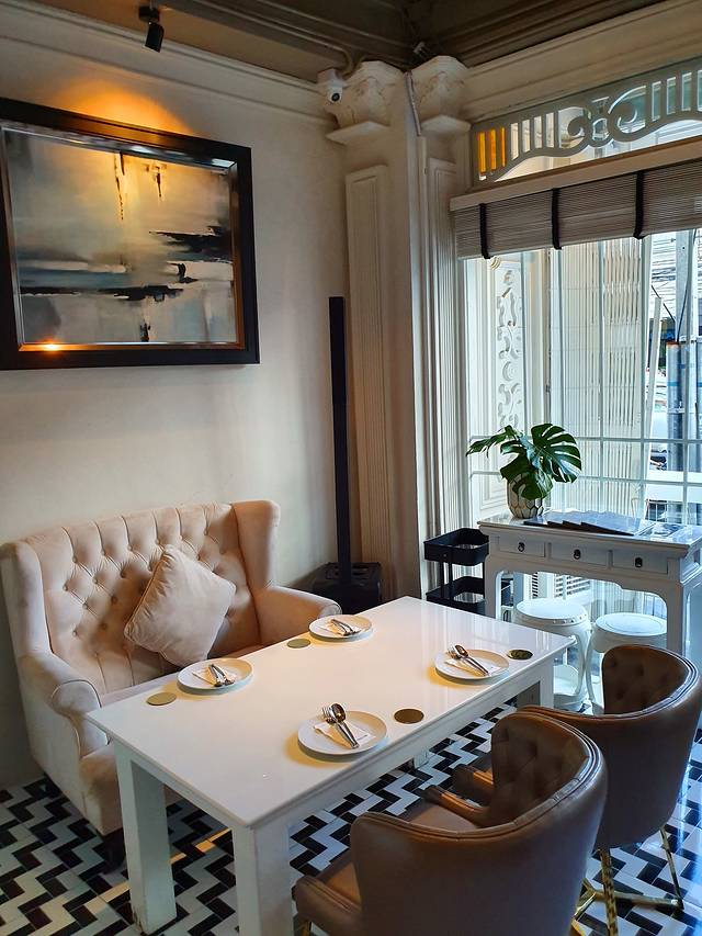 泰国人旅行同样也会做攻略,在来之前我就在Wongnai上筛选了一遍普吉镇的餐厅。初来乍到,唯有美食能舒缓旅途的疲惫,于是评分4.2的这家餐厅成了我们的晚餐首选。餐厅的位置很容易找到,因为它临街而立,而且就在普吉镇地标性建筑—拉侬路尽头的喷泉旁。从外面看是一栋漂亮的白色复古小楼,给人一种西泰结合的感觉。