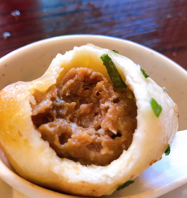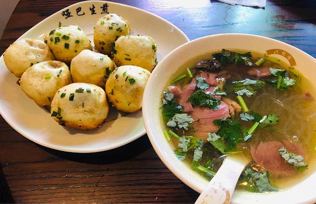 馅是有些天的,要先咬破一个口,吸一下汤汁再吃,生煎9块钱4个,本来8块,由于近期猪肉涨价厉害,生煎也就贵了点,粉丝汤11,一顿饭29块钱,也是我们吃的最实惠的一顿饭