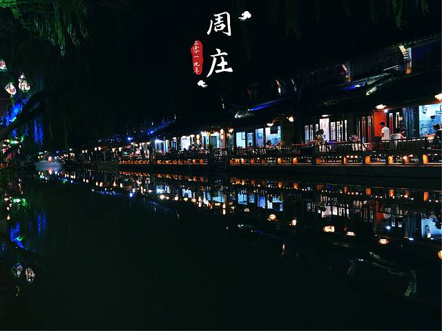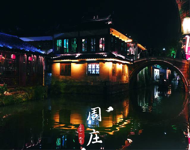 周庄早晨七点半之前和晚上八点之后,工作人员下班了,景区就免费进了,妈妈已经卧床不起了,我把她安顿好,围着这个小镇找药店,找水果店给妈妈买了药,找民宿老板煮了面,妈妈吃完也差不多八点了,我准备自己去景区转转,看看夜景。月黑风高,全靠一腔孤勇,不断向前。