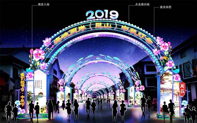 运用现代时尚的灯艺,诠释开放、融合、创新、卓越的昆山故事、台湾特色文化,