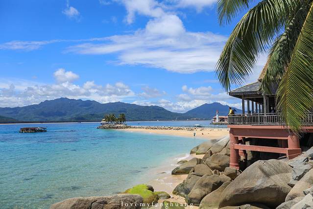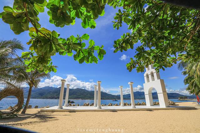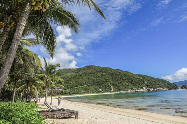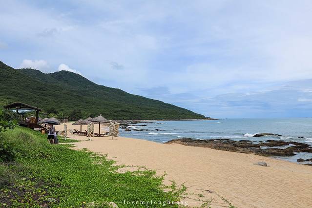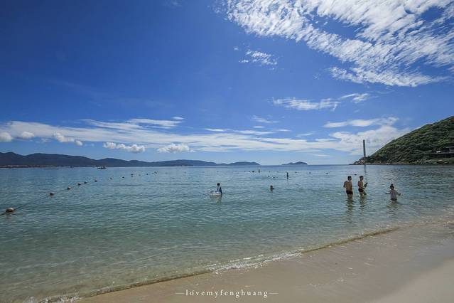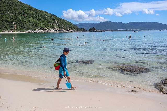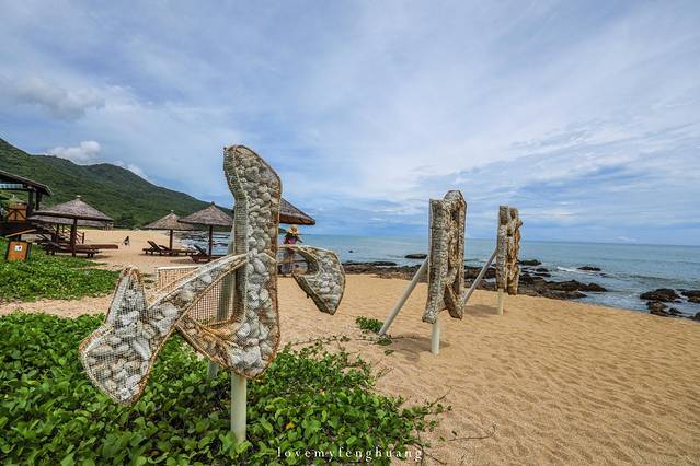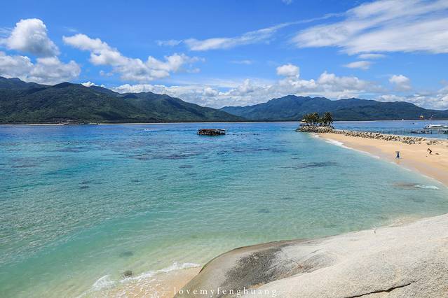 躺在躺椅上,眼前应了那句“面朝大海,春暖花开”,从上面俯瞰,整个海湾呈现U字形状,左边远处依稀可见 亚龙湾 ,这里没有人潮如织的 亚龙湾 ,整个沙滩上的游人不过20个,稀少的人烟,仿佛包场一般,可以肆意的玩水嬉戏,分为游泳区和礁石区,游泳区沙滩细腻,午后在阳光的照射下,沙滩还有淡淡的粉色,不用出国就能看粉色沙滩了,这里真的是太美了。