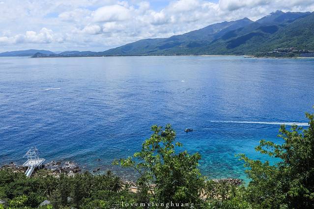 即使乌云密布,但只要乌云散去,海水变换了一种颜色,从近及远,从淡淡的蓝绿色再到深邃的蓝色,像一颗颗晶莹剔透的宝石在大海中闪闪发光,大爱分界洲岛的海水。