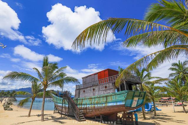 西岛渔村,从西岛景区的一个侧门出去,这边有很多在建的民宿,珊瑚垒砌文化墙,破旧的渔船上,彩色的涂鸦,充满浪漫风情的小渔村。