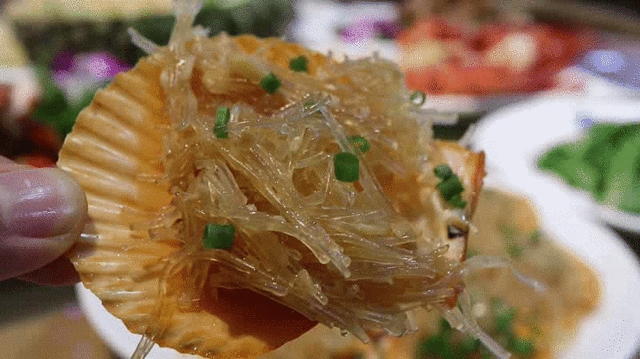 蒜蓉粉丝蒸扇贝是最常规,也是最经典的吃法,新鲜的扇贝,加上粉丝、蒜蓉,清蒸后,再撒上香葱,最后淋上热油。