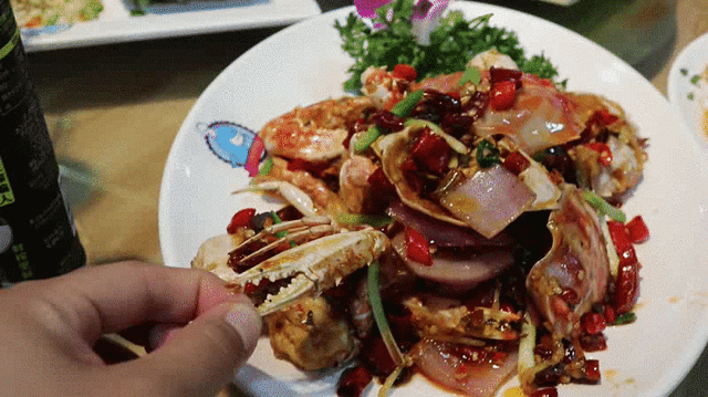 香辣蟹,最好吃的一道菜,酱香浓郁,青椒洋葱,香辣的味道也没有掩盖肉质的新鲜,正值红花蟹肥美的时候,入口先是浓郁的香辣味道,将蟹壳剥开,能吃出蟹肉淡淡的甜味.香辣蟹,最好吃的一道菜,螃蟹成熟的季节是国庆节后,目前 三亚 的螃蟹主要分和乐蟹和红花蟹,和乐蟹具体分大和乐蟹和小和乐蟹,想吃蟹黄一般是选小的,用来做香辣蟹,而大一些的和乐蟹比较好看,美观,肉质比较鲜美,但是一般蟹黄比较少吃到,两者在价格上,大的肯定要比小的贵,但是喜欢吃蟹黄的,推荐小的。酱香浓郁,青椒洋葱,香辣的味道也没有掩盖肉质的新鲜,正值红花蟹肥美的时候,入口先是浓郁的香辣味道,将蟹壳剥开,能吃出蟹肉淡淡的甜味。如果赶上没有蟹黄的季节去吃螃蟹,那么螃蟹的做法最推荐的还是香辣蟹,非常的入味,而且新鲜的螃蟹即使被爆炒后,仍然可以吃到肉质的细腻和甜味来。