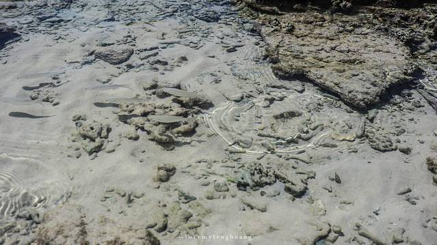 不用浮潜,热带小鱼就来到的你的脚边,由此可见这的水质有多么的好,白色透明的,黑色,深灰色如礁石一般,还有黑白相间的,如果仔细观察还有鸡蛋大小的螃蟹,到处可见的珊瑚碎片,早 上海 水褪去,这些小东西都赤裸裸的呈现在沙滩上,可以借此机会,打捞一番。