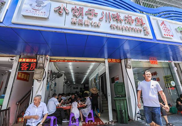 四川 小胡子海鲜加工(小胡子川味海鲜)在 三亚 已经有20多年的历史了,单是第一市场就开了2家店,除此至外,还有香水湾和一号小镇店,这次来第一市场总店 新民 街来吃,如果是饭点来的话,尤其是晚上一定要早来,否则就要拿号等座。