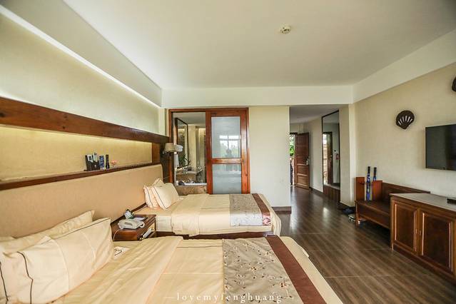 穿过酒店,来到后花园,先是一段绿草茵茵,穿过茂密的椰子林,当第一眼看到这片海湾,惊呆了!感叹水会如此的清澈,沙子是如此的雪白、细腻。像极了之前去过的 巴厘岛 ,仿佛捡到了宝藏一般!