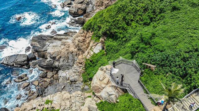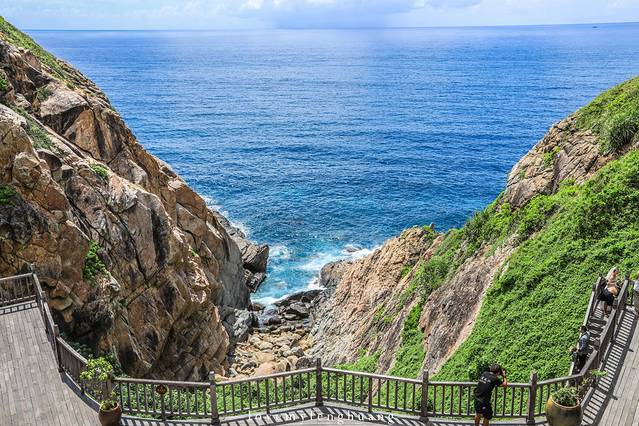 大小洞天 景区不大,沿海栈道长约2公里左右,如果时间相对 富裕 可以徒步,如果为了节省体力,在进入景区大门,下 高台 阶后,右侧也有一个电瓶车的售票处。
