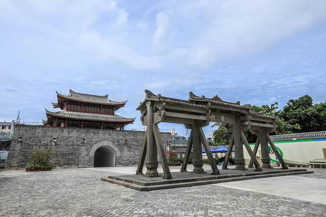 从 三亚 市中心打车到崖州,三四十公里的距离,近年来古城重新修复,说是古城墙,其实就是一个城门——文明门,目前还不能登上去俯瞰。
