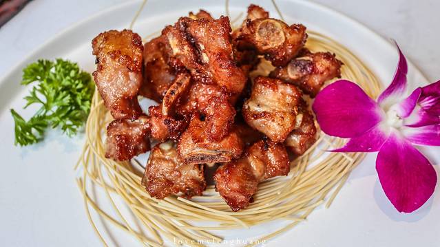 南乳黑猪排骨,这道排骨是蒜香口味的,切成像鸡肉块状大小的排骨,肥瘦相宜,油而不腻,最重要是入味,而且很好吃。