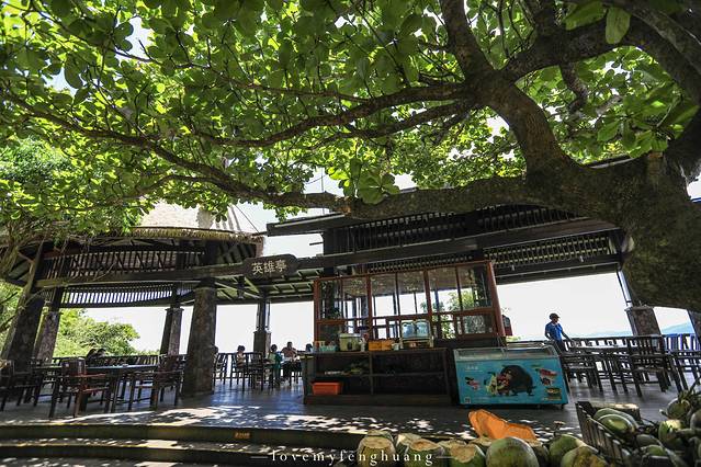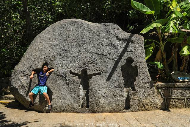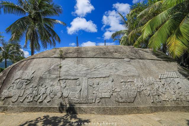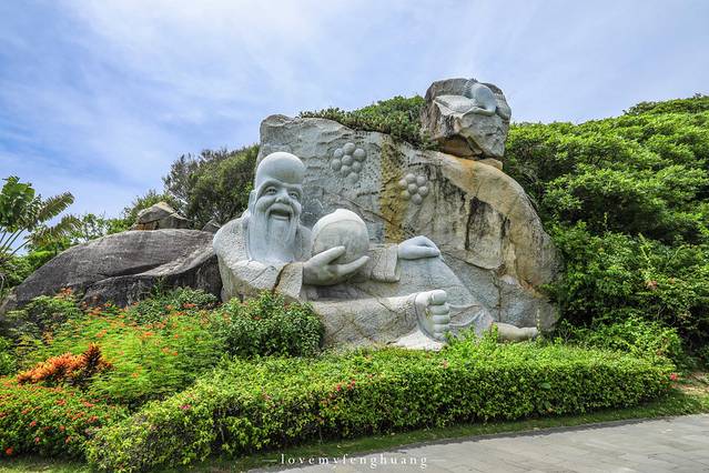 电瓶车终点站,在小月湾这边,再往前走就是小月湾度假酒店,景区里的一处酒店,下了车山上有一处大石雕,刻画的是我国古代伟大的哲学家和思想家之一的老子,这尊“老子望海”石雕背靠鳌山,面带思考的神色眺望着海洋,那深邃的双眸,守望着 南海 这片海域。