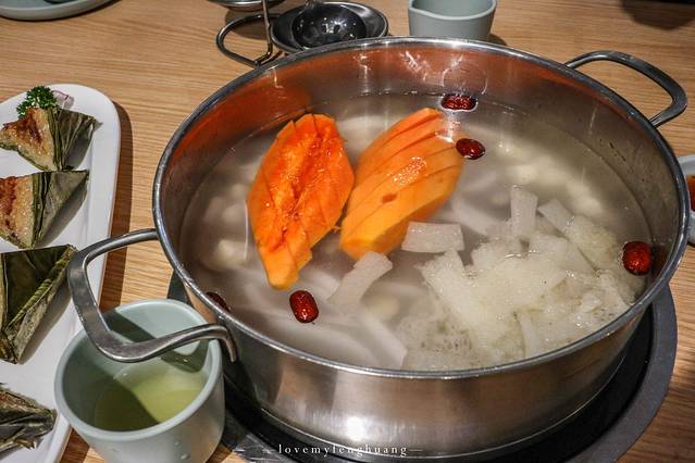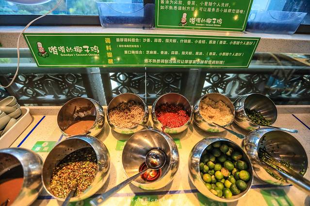 不得不说,这家店从外观上就给人一种明朗、干净、温馨,简单的桌椅和布局,小清新的风格,没有印象中火锅店浓浓的锅底味道,而是一种飘香四溢的椰子香,不愧是“三个椰子一只鸡”嗲嗲在当地独具一心的文化守望和承袭,遵循原汁原味的“裸烹”,用东郊椰子代替了传统的锅底,简简单单还原食物最本真的味道。