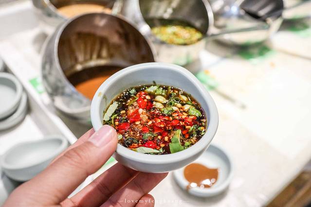 像吃火锅一样,自助小料自选,无线可续,麻将、腐乳、香菜、香葱、酱油、米椒、果仁碎、还有青柠,如果不知道要哪种口味,可以让小妹帮忙调制一份“最嗲调料”。