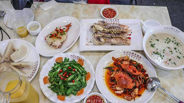 因为我和闺蜜喜欢吃川菜,所以一眼就锁定了这家,香辣蟹、芒果螺、 波士顿 龙虾、蒜蓉粉丝扇贝、菠萝饭、四角豆、白灼基围虾。这家有一点特别赞,店员会主动用热水给客人将餐具烫一下消毒,而且有自制的免费酱料,咸甜口的,配 上海 鲜吃,很鲜香。吃海鲜最好的方式就是用手,如果担心会弄的手上很脏,店里还提供一次性手套,很贴心。
