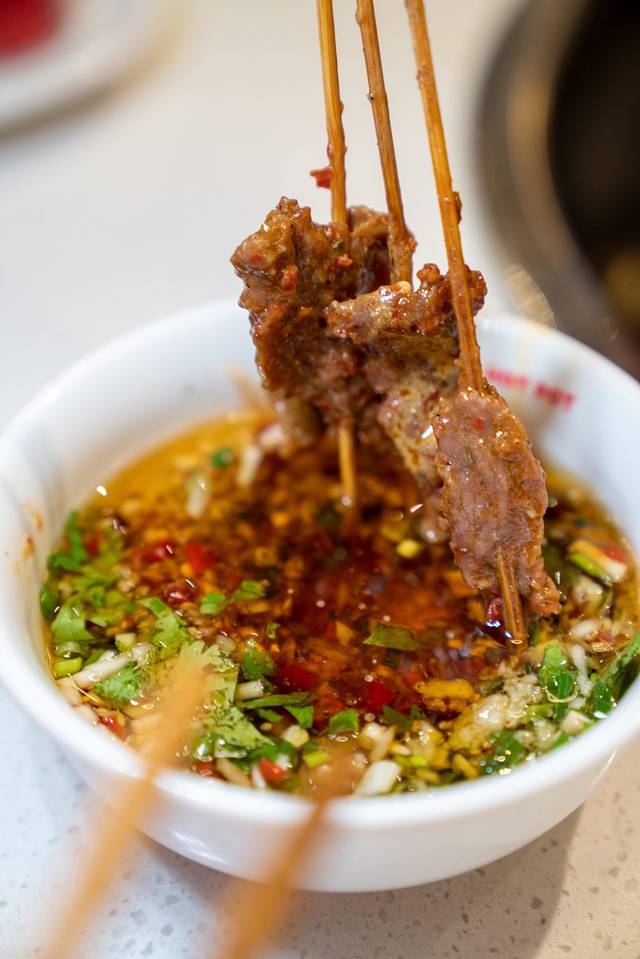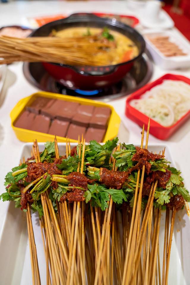 牛肉:吃串串的重头戏就是牛肉,泡椒牛肉、折耳根牛肉、香菜牛肉、芹菜牛肉,每一串上面肉都超多,一口下去简直超级满足!而且袁记串串香家的牛肉,绝对的正宗地道,口感滑嫩,就是那种与红油锅碰撞以后,更加香辣的感受别提有多酷了。