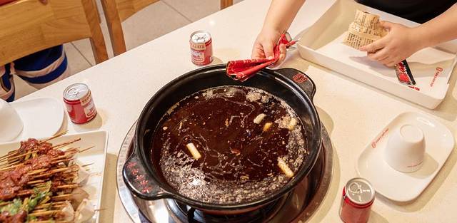 锅底:当然是推荐红汤锅底,虽然我不是成都本地人,但是也是那种无辣不欢的人,才不要吃鸳鸯锅!一定一定要试一下地道且正宗的红油锅,他家锅底的一次性的,现场拆倒入锅中,非常干净卫生,而且那个色泽,一看就让人不禁想要流口水,真是为了能吃到这一口,也是小折腾了一番。