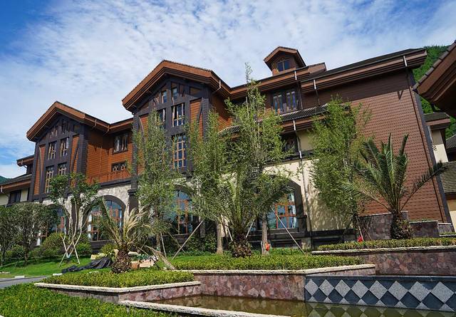 整个酒店的建筑就是东南亚的设计风格,妥妥的度假风,绿色植被环绕着,4000平米的草坪,撒开欢儿玩儿吧~进大厅的回廊很适合拍度假大片儿,check in后就迫不及待在酒店里逛起来,酒店的整个内部设计也是很大气,被包围在群山之中,主体大楼又是偏欧式的建筑,从一大片婚礼草坪拍过去,有种瑞士既视感~完全能让你有放松身心的度假心情。
