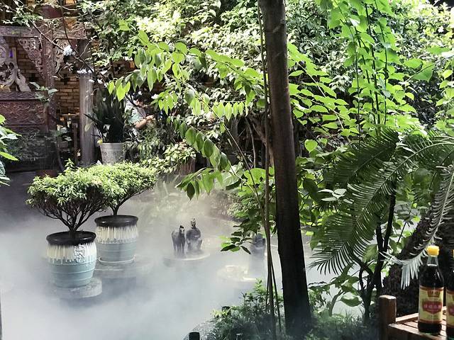 进门口的地方有水幕投影,进入院内之后更显古色古香,桌子分布在各个角落,碧池绿草,仙雾弥漫,又有种置身在仙境中吃饭的感觉,期间还有古筝演奏,用餐心情可谓很愉快了!