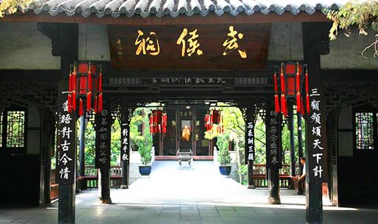 走着走着到墙的另一边的武侯祠,由闹到静,突然进到一片安静的地方,心情一下平淡了许多。武侯祠是国家一级博物馆,是纪念诸葛亮、刘备等蜀国英雄的地方,在这里可以参观到记录诸葛亮功绩的牌匾,还可以看到许多三国时期耳熟能详的历史和文化。