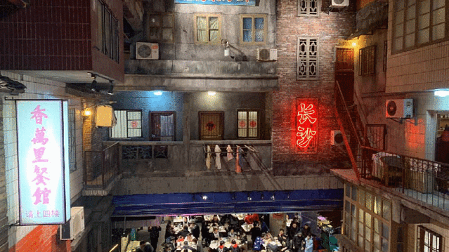 我们去的是海信广场店,也就是小红书上火爆了的拍照圣地。文和友龙虾馆在海信广场副翼包下了整整一块区域,外面是等位区,里面是用餐区和拍照区,生生的将一个老长沙的市井街区给打造了出来。