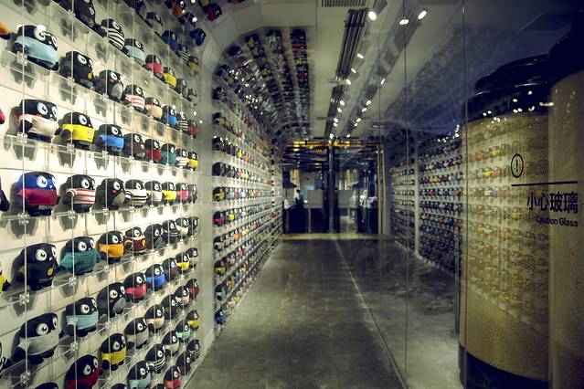 万物始于微末 臭豆腐始于黄豆,在入口处的磨砂玻璃的背后,你会看到一些可爱的小豆人排着队走过,它们整装待发,准备造就美味可口的臭豆腐。