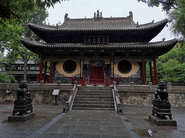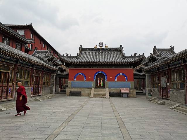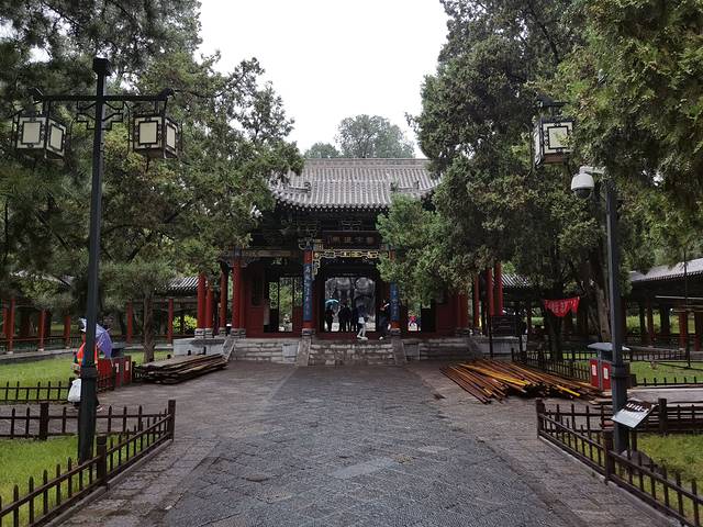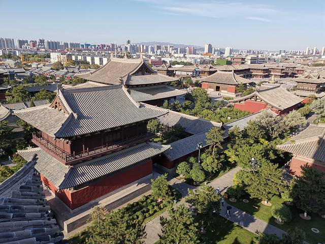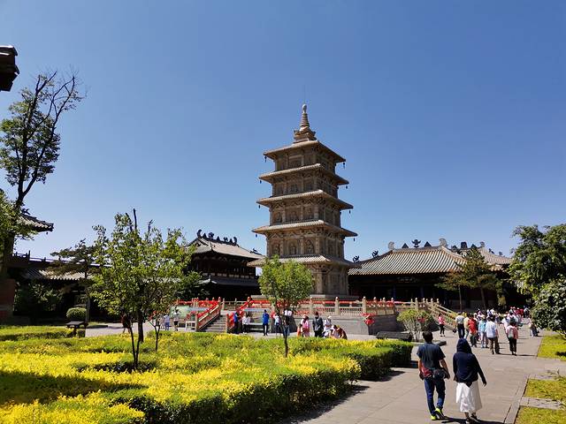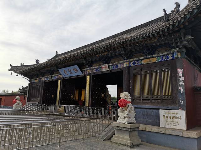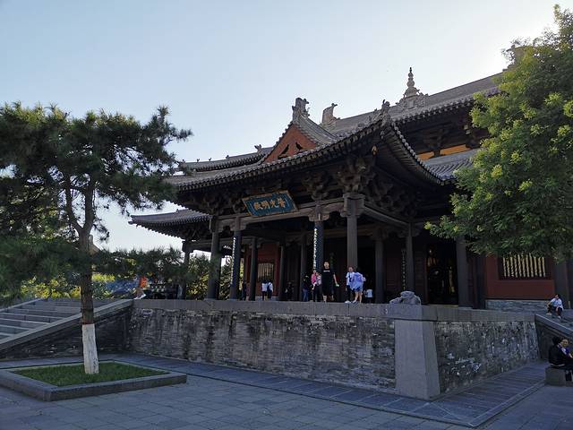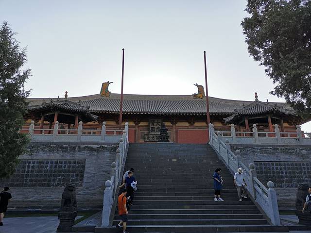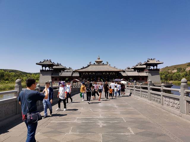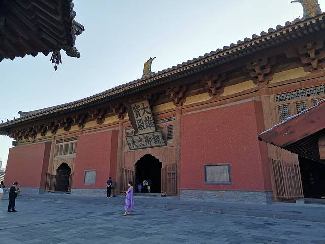 灵严寺 云冈石窟前的一座寺庙 是新建的 起到了缓冲游客的作用 避免游客直接聚集在云冈石窟前。