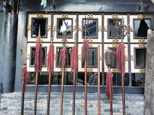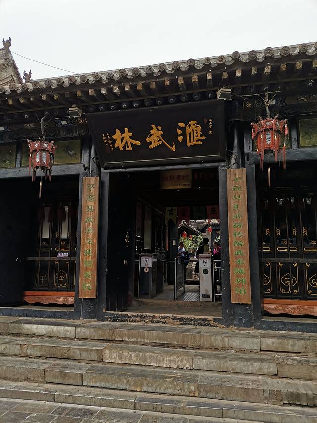 汇武林,是一处结构独特,集镖局与教场于一身的传统武术陈列馆。是平遥唯一一家武馆,与票号日升昌倚门相望。原为平遥著名的八卦拳师王伦先生会友习武设教场的旧址。 汇武林总面积达2800平方米,它分为前后两个部分,前面是陈列馆,共三进院,后面是一个演武场。