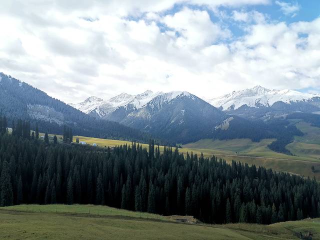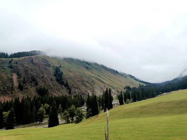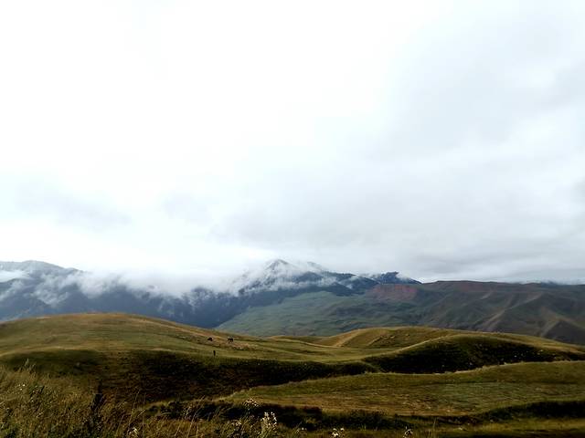 这一天的景点只有琼库什台,虽然天公不作美,小雨淅淅沥沥下个不停,但一点也不影响我们欣赏它的美。琼库什台距离特克斯县城约90公里,盘山公路很多,从特克斯往琼库什台车程需要约4个小时。对于通往琼库什台的路,我只想说你怎么那么美,你为什么怎么样都美!