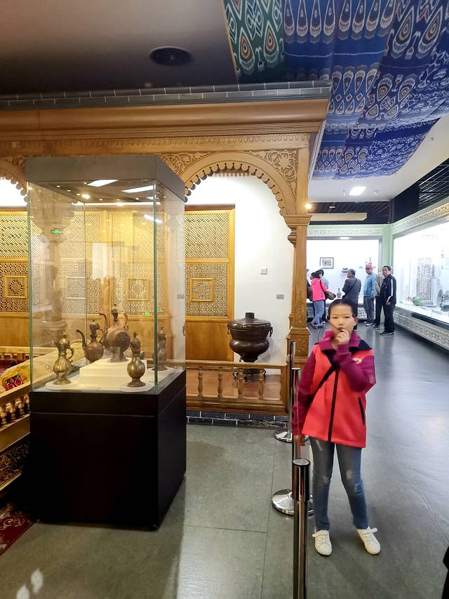 一楼新疆民族风情陈列展厅详细地展示了新疆少数民族,包括维吾尔、哈萨克、蒙古等12个民族的民俗风情,展示了少数民族日常生活的用品和服装等等,还有小讲解员在义务讲解,声音特别清脆。