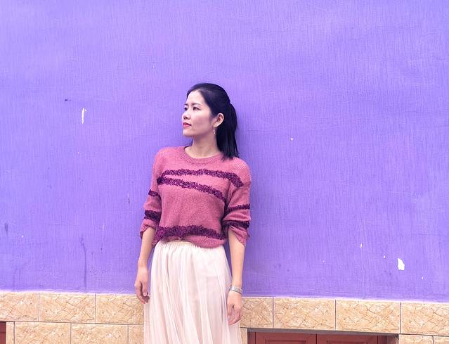 本次出行以保暖为主,没有带一条裙子,唯一上身的这条是媚借给我凹造型的,纱裙搭牛仔裤,也是有蛮时尚^O^