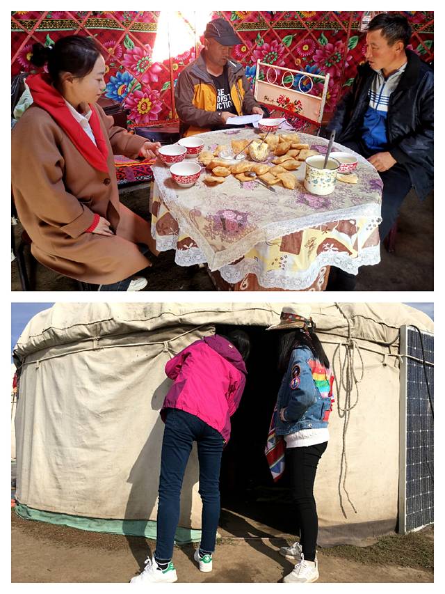 在车上和师傅闲聊,他说昨天晚上加油到一点,我就顺口问油价怎么样?师傅说92的汽油6.5元每升,我说还好,跟内地价格差不多,你们不是有油田吗?师傅笑说,新疆出啥啥贵,天然气要3.79元一立方,倒是牛羊肉60一公斤,便宜。还告诉我们新疆从幼儿园到高中全免费上学,马肉只能冬天吃,过了3月份马肉变酸口感不好。漾就提了一句特别想去当地村民家中看看,师傅二话没说找了个哈萨克蒙古包家庭停车,带我们进去看看,漾嘴馋,还找村民买了小吃尝了,说味道很不错。