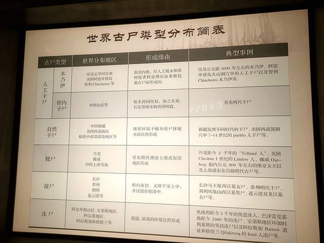 二楼的主要展厅就是“新疆干尸”的展厅。新疆干尸不同于埃及的木乃伊,尸体上没有使用防腐剂和进行特别处理,是在新疆独特的极其干燥的环境中自然形成的。