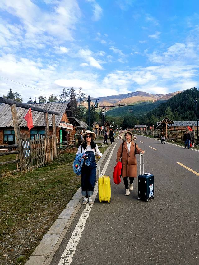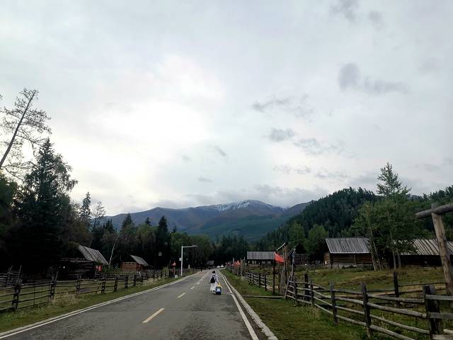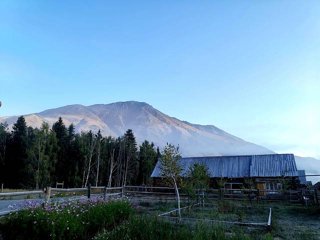 从湖边回来已经4点40了,坐上了开往白哈巴的区间车(工作人员告诉我们这个季节大概40分钟一趟,最晚的一趟是6点),幸运的是我们仨刚一上车就满员发车了。从换乘中心到白哈巴村一个小时的车程,沿途风光自不用说也是很美的。白哈巴公交站可以免费换乘进村的公交车,我们等了半小时才等到公交车,其实离最近的站大概也就不到一公里左右,像我们住的客栈离第二站邮电所只有几十米。