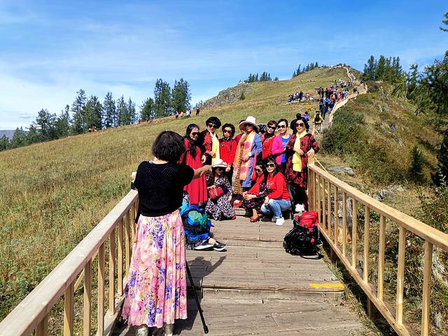 等不到大师傅的面,吃完酸奶油条我们就往观景平台去了,又偶遇了刚在后院蹭酸奶的胖子导游,本来带阿姨团,结果一路抛下自己的团员和我们聊天,插科打诨。他说他是蒙古族人,叫巴特尔,因为经常带团,知道拍照角度,主动帮漾拍了很多美照然后就加微信传照片,结果被我们知道他的真名叫"王卫东",这个骗子,哈哈。
