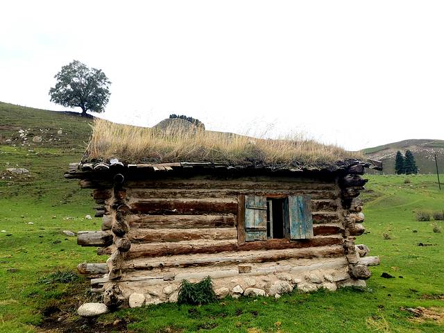 以前的原始的小木屋,现在都没有人住了,里边有木板搭起的床