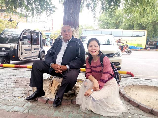 漾在逛一家皮毛制品店,店门口的大叔主动求合影