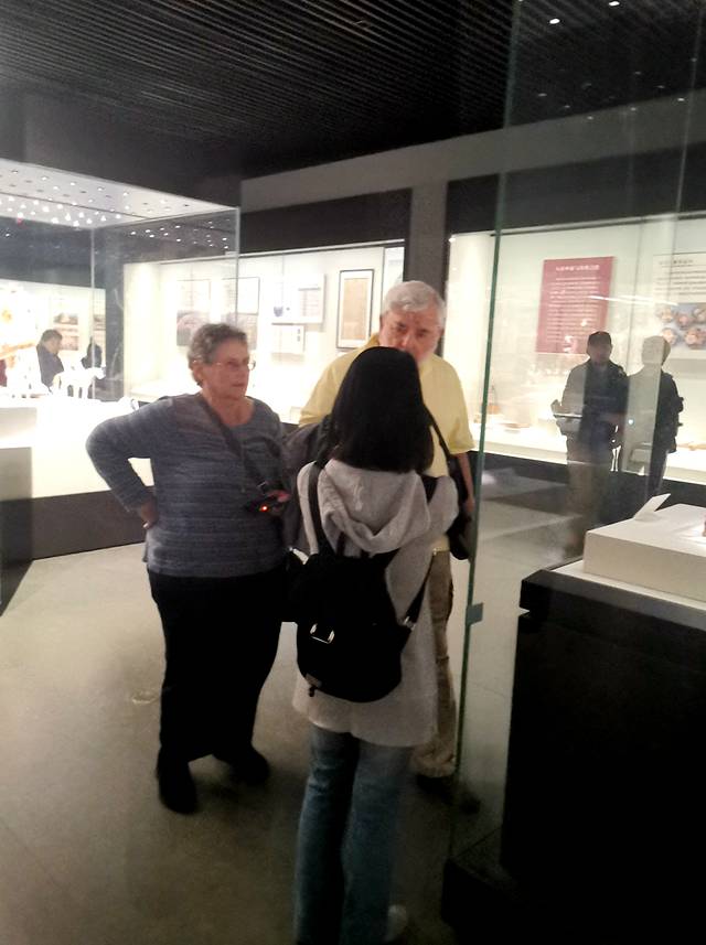 正好遇到外国人在参观博物馆,有位英语特别流利的小姐姐在帮他们介绍