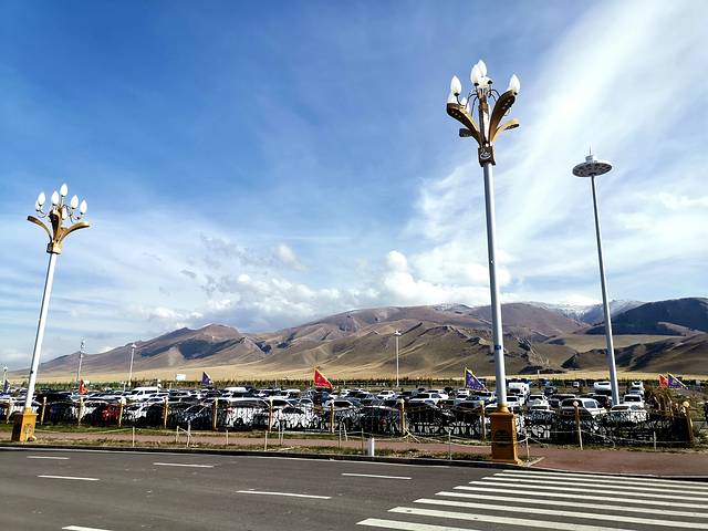 去售票点看了下,租电动车价格500元,可以环湖4小时,区间车也要75元一人,我们一合计,可以拉两个小伙伴拼车。运气不错,漾问的一对情侣爽快同意了,办好手续之后开车玩去了。可能天气太冷了,太阳也快要落山了,赛里木湖的美感并没有凸显出来,我们草草转了半个湖,就匆匆回转了。
