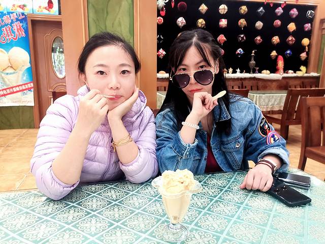 在喀赞其入口处,有伊孜海迩、美味、夏贺扎德三家著名的冰淇淋店,据说是兄妹店。口味各有各的好评,为了解决疑惑,我们一一品尝了。首先进去的是夏贺扎德店,源于有位网友说伊孜海逊是网红店,但最好吃的是夏贺扎德。点了原味的和树莓的三个球,一共10元,特别好吃,口感细腻,甜度适中。吃完了然后到隔壁的伊孜海逊尝原味的,9元,点了一碗原味的,口感较沙,味道不如隔壁的,但还不错。逛完汉人街折返回来又去尝美味家原味的,8元,甜的腻人,吃了两口就走了,还是到夏家续个杯吧,原味三个球只要8元,性价比最高,味道最好,但生意比隔壁的伊孜海逊差很多。
