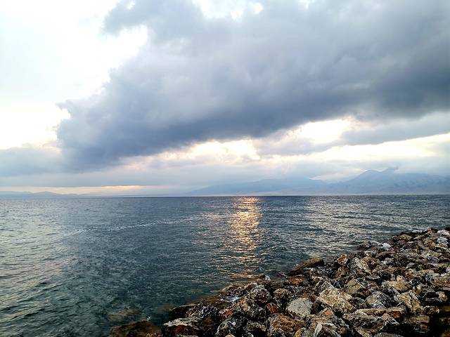 赛里木湖,是新疆海拔最高、面积最大的高山湖泊,又是大西洋暖湿气流最后眷顾的地方,因此有“大西洋最后一滴眼泪”之称。很遗憾我们此次并没有遇见它最美的时候,和它想象中该有的蓝天白云绿草黄花散布在一片碧蓝的湖水边的景象相差甚远。