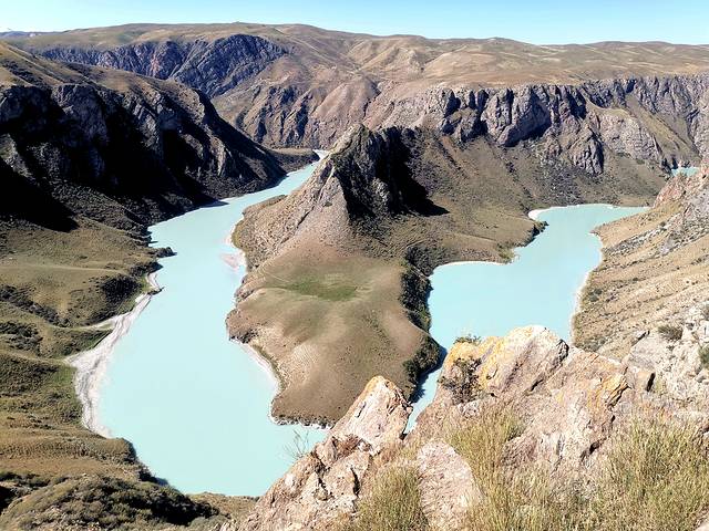 我们近10点才从民宿出发,差不多半小时车程到布拉克门票站,我们买的是275元的景区全域票(两日票),在网上买会便宜一点。时间不够的话,可以分别选择购买峡谷和草原景区的门票。到了门票站取过票之后,拿了地图册才知道原来景区是如此的大。喀拉峻—阔克苏全域景区分为东喀拉峻、西喀拉峻、阔克苏大峡谷景区,因为我们没有提前研究,导致对着地图也是一头雾水。工作人员问了我们的停车和购票情况后,让我们坐区间车到达游船码头,游船码头在特克斯县城到布拉克门票站的中间,其实一开始把车开到游客中心比较合理,这里多浪费了半个多小时。