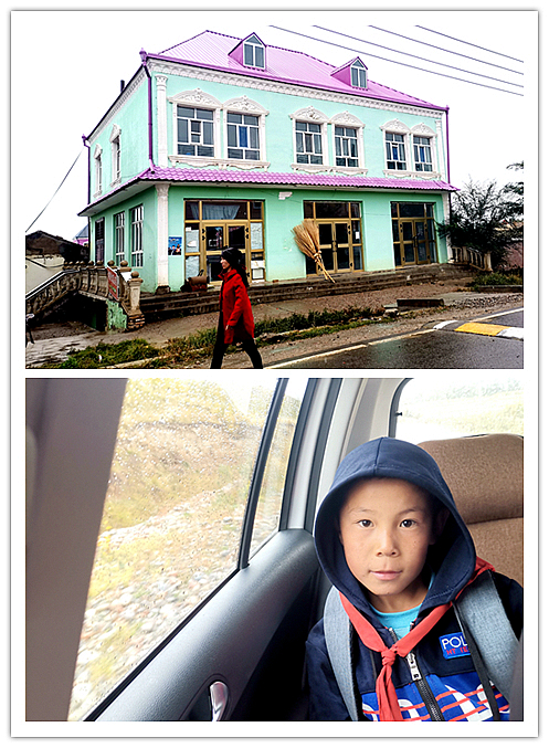 一早起床后在老板家吃过丰盛的早餐,连昨晚没有吃完的大盘鸡都让老板热好消灭掉了。吃完饭一看已经八点四十了,为了赶最早一趟9点出村的区间车,我们急急忙忙和老板告别出发。由于村里的公交车也是9点始发,我们只得步行了,从村子回白哈巴公交站距离虽只有一公里左右,但路是一个大长坡,我们三个拖着行李箱气喘吁吁,体力不支的媚靠着金刚芭比漾帮忙拎着箱子,紧赶慢赶上了第一趟车,又刚好剩余三个空位,幸运!