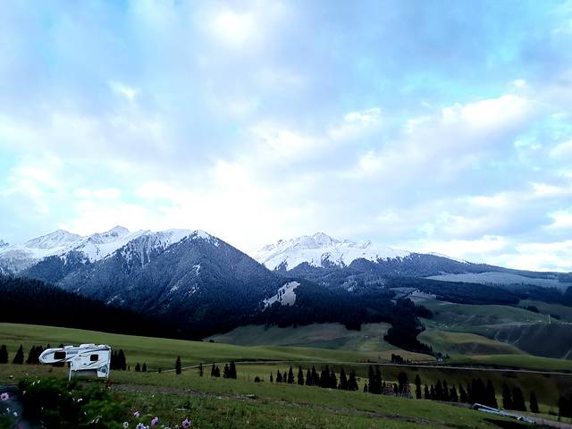 到禾木停车场还需要乘坐一小时区间车才能到禾木村公交点,中途实在扛不住了还小憩了一会,睁开眼睛,发现外边怎么下雨了,一到公交站发现天又晴了,安心了。