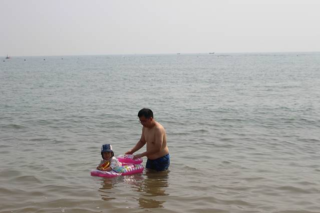 由于前两天风大根本就下不了海,今天还算是风平浪静,就抓紧时间下了一次海,但是海水还是有点凉,但是朵朵很开心,因为她太喜欢到海里玩。所以说出来别管别人说什么孩子能不能记住去过哪,我觉得只要当时开心就好了~!